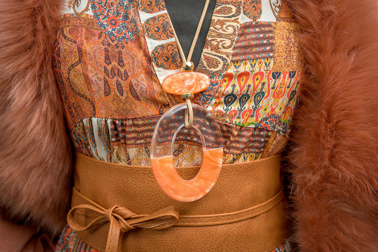 Un petit goût d’automne avec cette magnifique robe tunique et cette cape en fourrure et les accessoires.