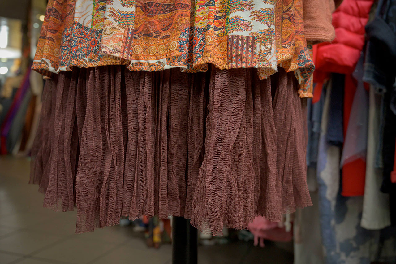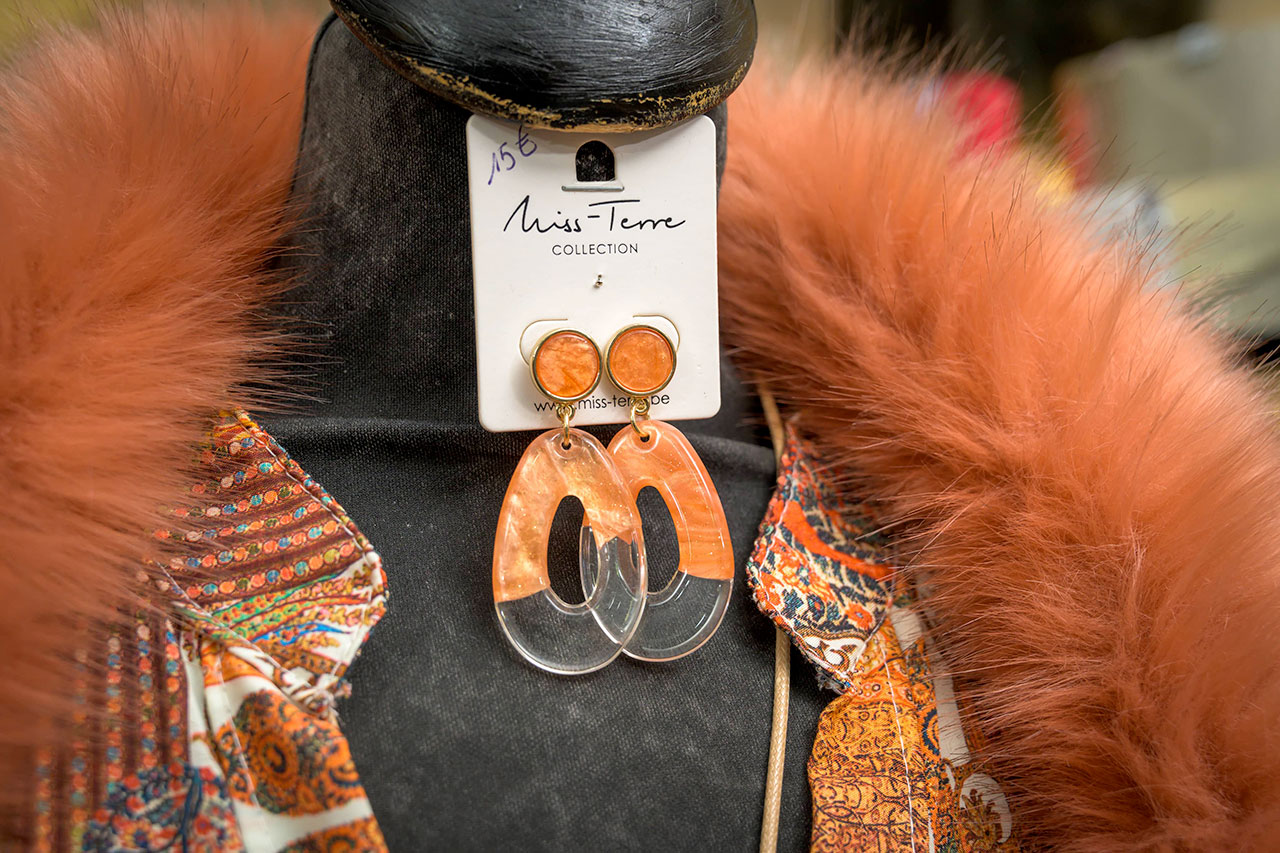 textiles, accessoires (bijoux, chapeaux, sacs), grands choix de robes de soirée et d’habits de cérémonie.
